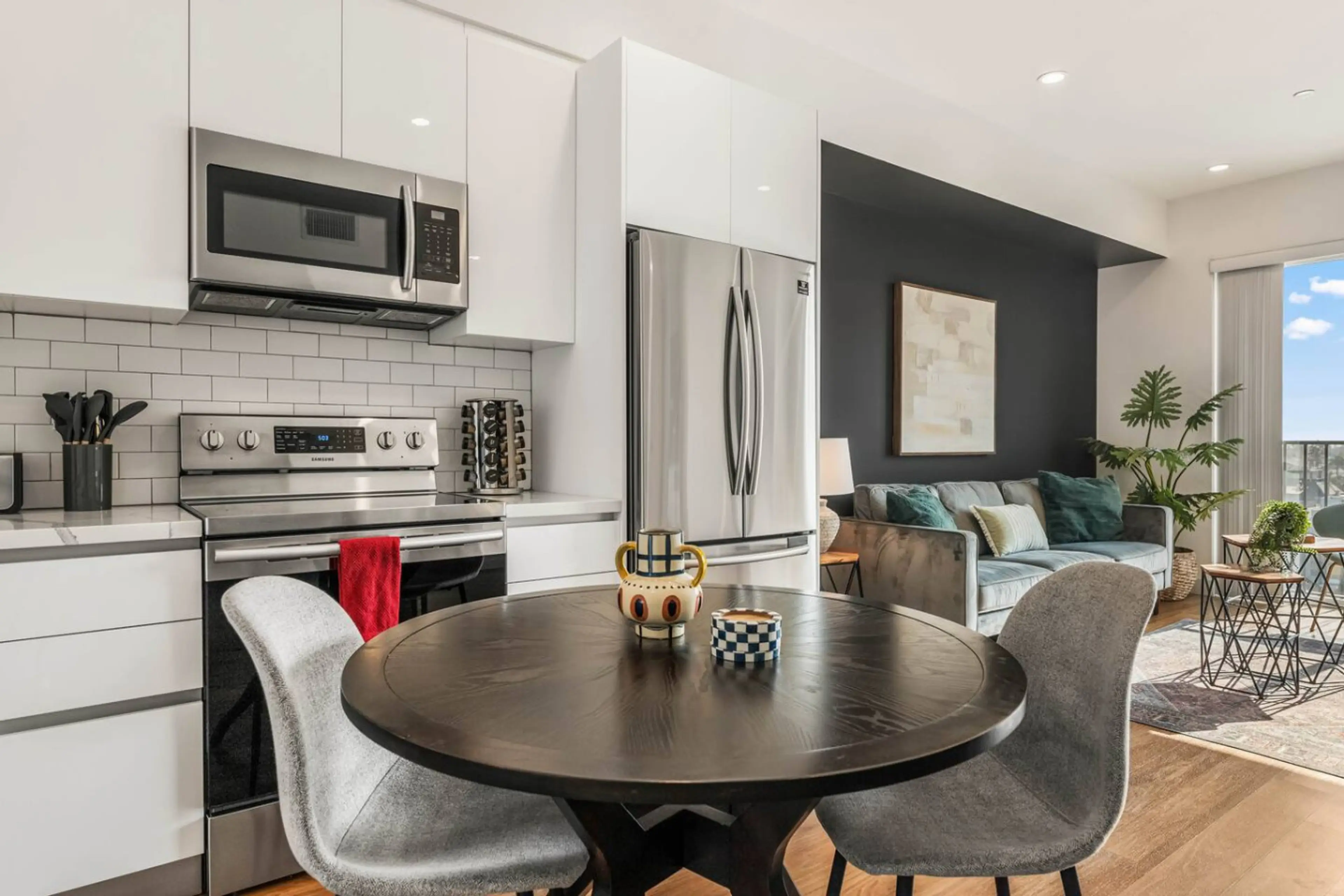- Modern & Spacious 1BD+1BTH in Korea Town - 1 King Bed & Additional Air mattress (Sleeps 4) - Fully equipped kitchen w/ top appliances - Smart TVs - Private Balcony - High-speed Wi-Fi & work-friendly spaces - In-unit washer/dryer - FREE Gated Parking Space - Walk to K-Town dining, nightlife,...